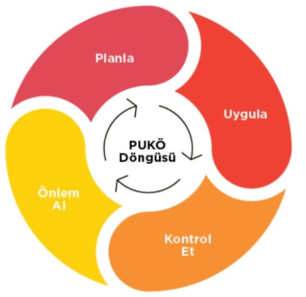 | Süreç Planla-Uygula-Kontrol Et-Önlem Al döngüsü ile sürekli gelişim ve iyileştirme sağlanır. |